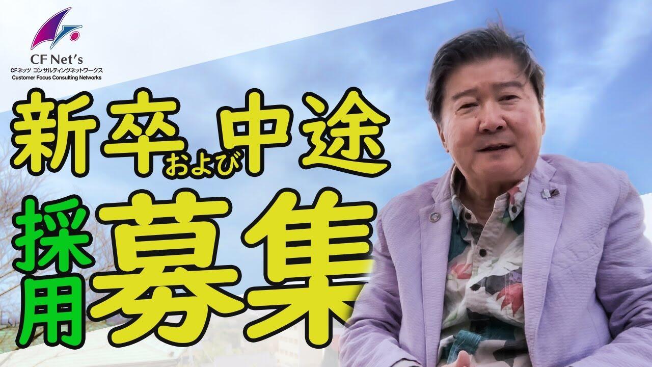 就職という言葉があるが、就職とは職に就くこと。最近の若い人は就社。仕事が楽しくなかったらプライベートも楽しくない。仕事を充実させるには、スキルを上げること。若いうちからコツコツとスキルを積み上げる。そこで培われた信頼関係から仕事を任される形が一番いいと思う。 不動産の経験がなくても、何かで結果を出した人であれば、ご応募していただきたい。面接に来て夢を語っていただき、将来に向かってみんなで頑張る。それをカバーするのが会社だと思っている。電話ないし履歴書を送っていただければ。YouTubeのCFネッツチャンネルとCFネッツセミナーチャンネル、CFネッツのホームページで当社を見ていただき、自分の将来がどんな形で動いていくのか、を研究検討しながら、ぜひ、ご応募していただきたい。